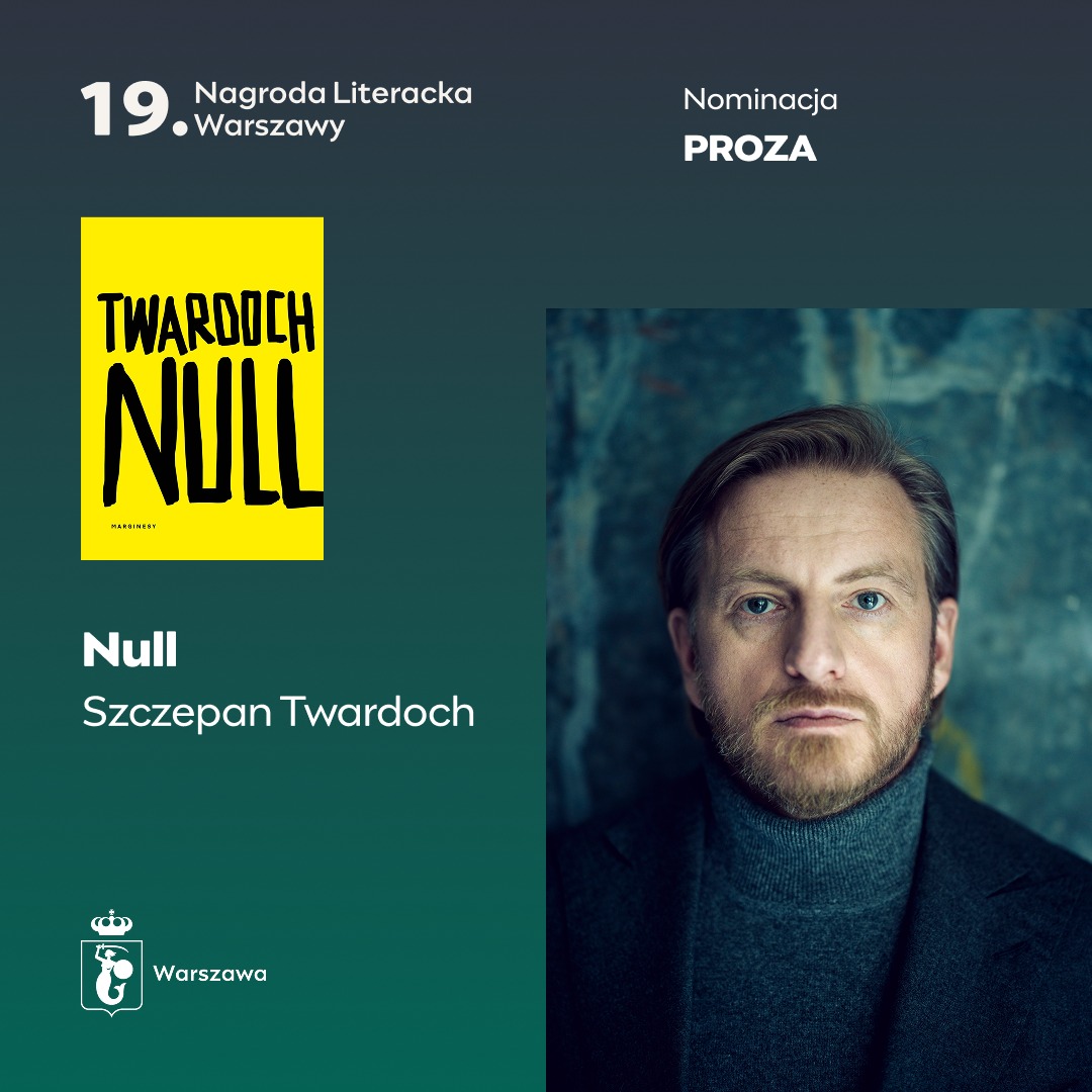 Szczepan Twardoch z nominacją do Nagrody Literackiej Miasta Stołecznego Warszawy w kategorii Proza za powieść „Null”. Gratulujemy Autorowi i wszystkim Nominowanym! Zwycięzców poznamy podczas gali finałowej w dniu 13 czerwca.